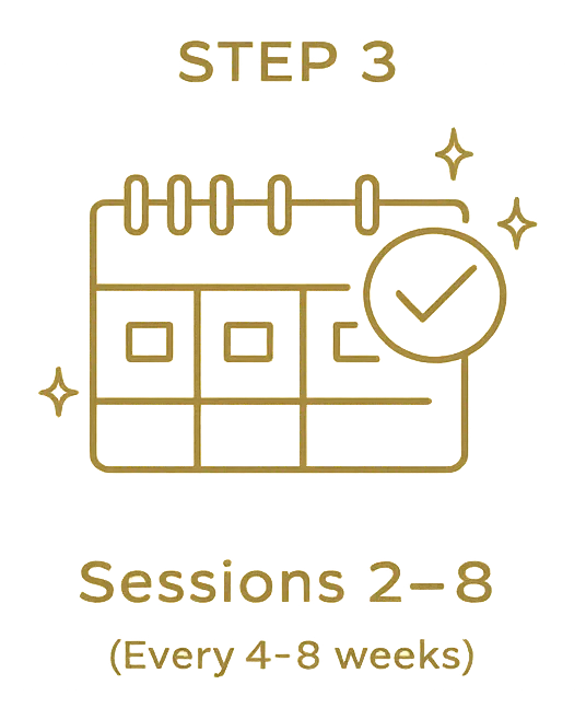 Sessions are typically spaced 4-8 weeks apart to match your hair growth cycle. We'll create a custom schedule at your consult.